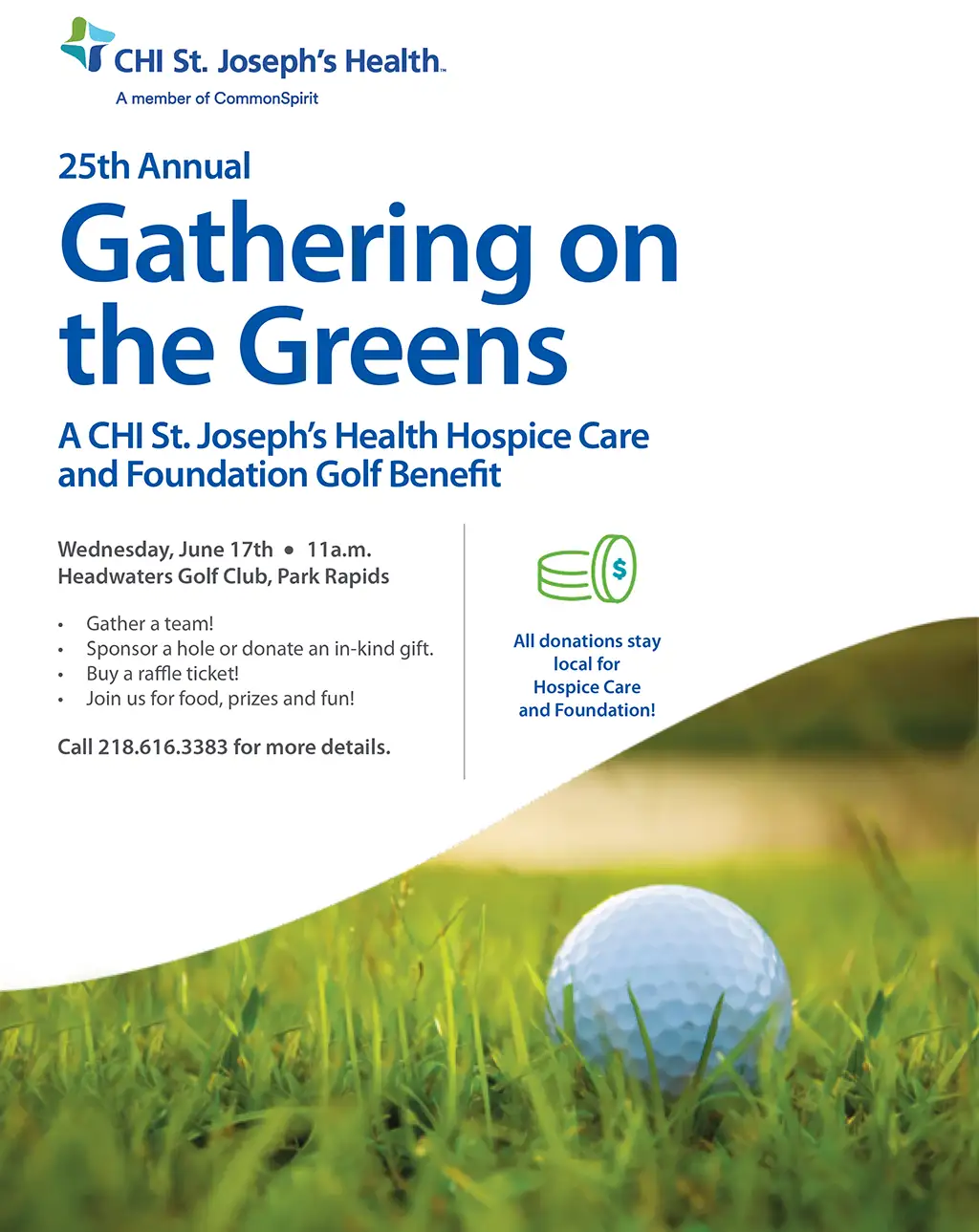 Search for: Home About Us Better You Blog Leadership Publications Community Benefit News Center Volunteer Services Foundation Medical Mondays Services All Services 24-hr Emergency & Level IV Trauma Center Ambulatory Care/Same Day Care Cancer Screenings Cardiopulmonary Rehabilitation Care General Surgery Clinic Hospice Care Imaging Medical / Surgical Orthopedics & Sports Medicine Primary Care Clinic Rehabilitation Care Patients & Visitors Gift Shop Café/Cafeteria/Other Food Options Admissions Financial Assistance Estimate Your Costs Hubbard County Resource Directory Release of Information Price Transparency Spiritual Care Preparing for Your Stay Checklist Visitor Information Grateful Patient Program Map Online Bill Pay Find a Provider Annual Gathering on the Greens Golf Event Home » Foundation » Gathering on the Greens Golf Event Download Flyer (PDF)